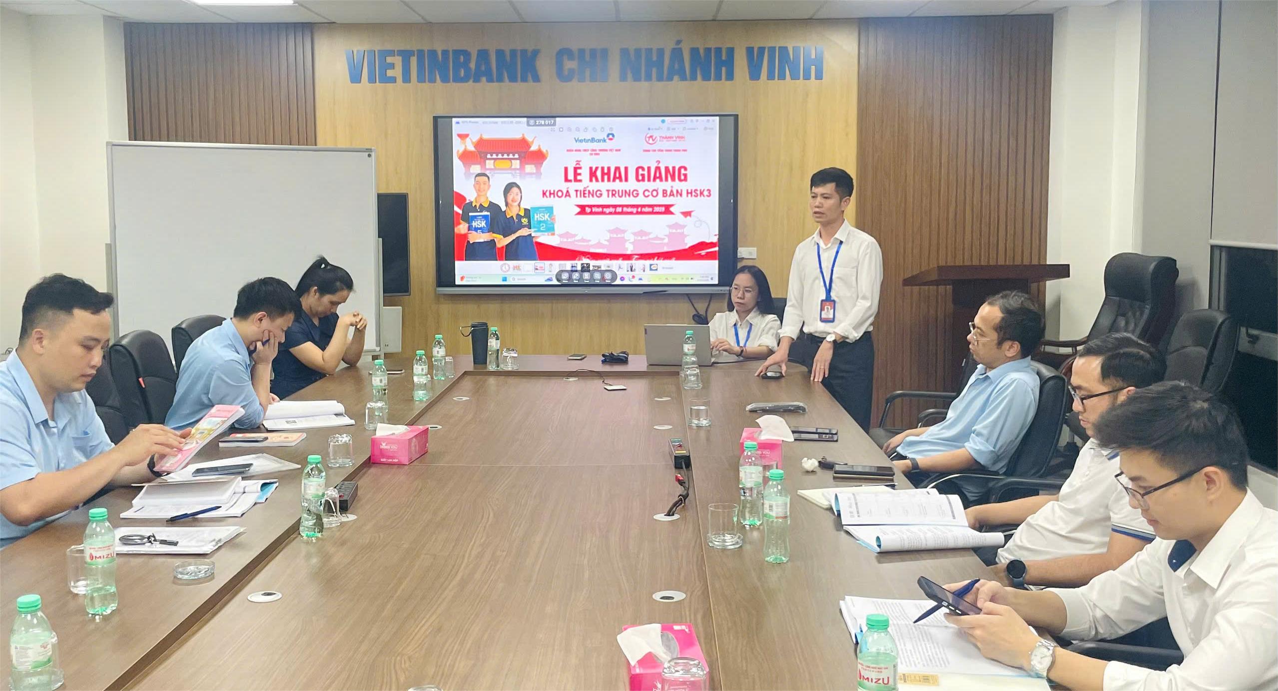 Tham dự buổi khai giảng có sự hiện diện của đại diện Ban lãnh đạo ngân hàng VietinBank, ban giám đốc Trung tâm tiếng Trung Thành Vinh, cùng các thầy cô giáo và toàn thể học viên tham gia lớp học. Mở đầu chương trình, đại diện phía ngân hàng đã phát biểu cảm ơn Trung tâm đã đồng hành cùng đơn vị trong việc nâng cao trình độ ngoại ngữ cho cán bộ, đáp ứng nhu cầu phát triển và hội nhập quốc tế của ngành ngân hàng.